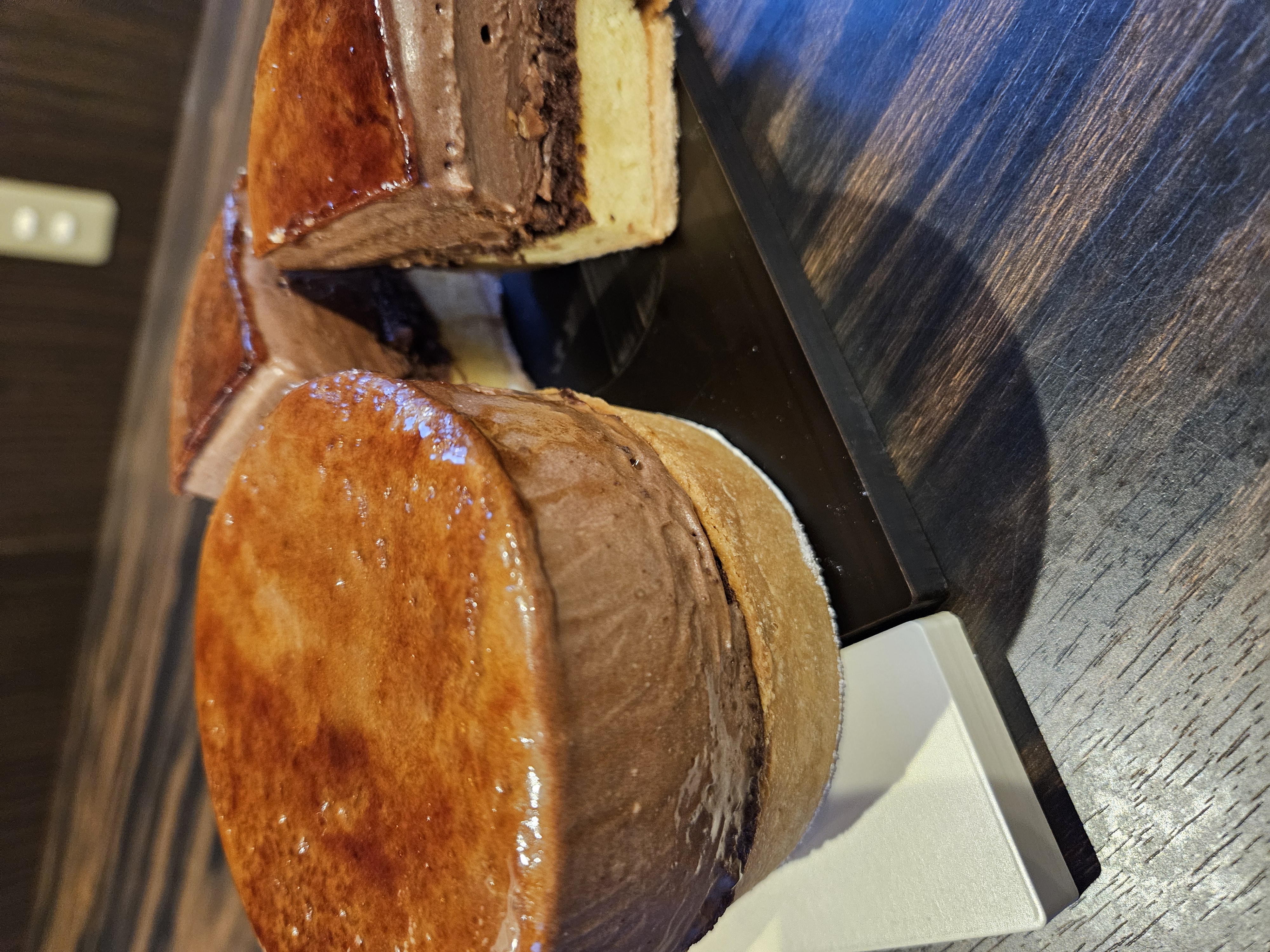 アーモンドクリーム入りのタルトとチョコレートのシブースト